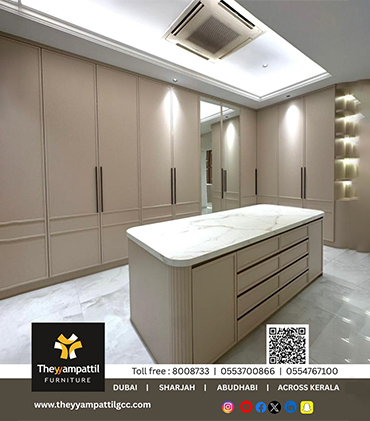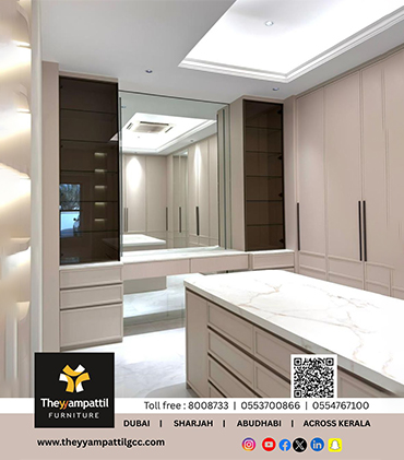 Create a personal sanctuary of style with Theyyampattil’s custom-designed walk-in closets – where elegance, space, and smart organization come together. Our walk-in wardrobes are more than just storage; they are a reflection of your lifestyle.